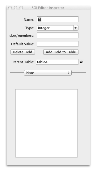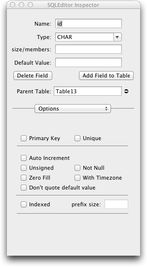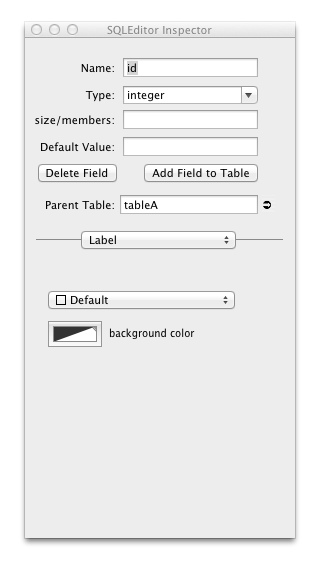 The field inspector allows editing of fields, which in SQLEditor represent table columns