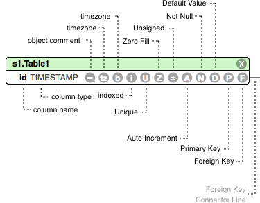 Columns in databases can have various options and SQLEditor supports most of the common options. Icons appear on fields for each option that is set.