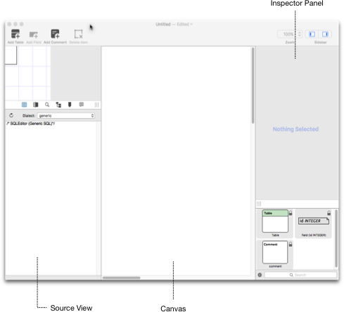 The left side has the source view, which displays a live view of the SQL source for the diagram